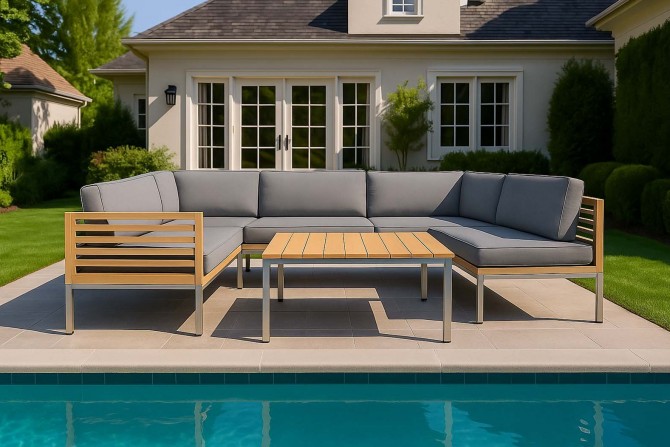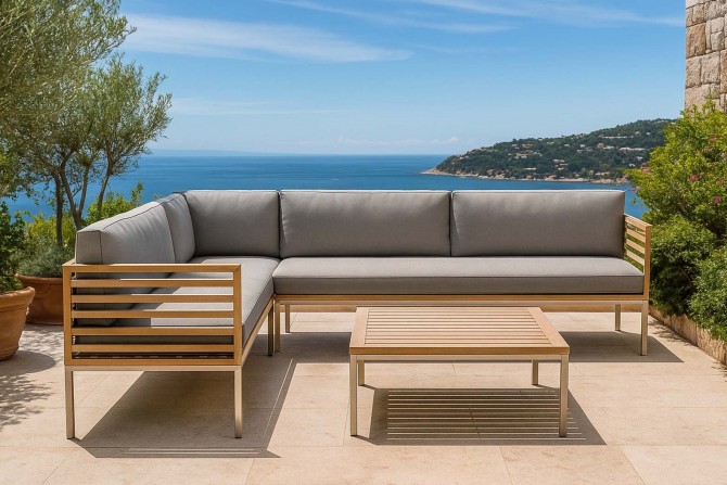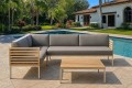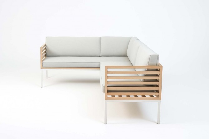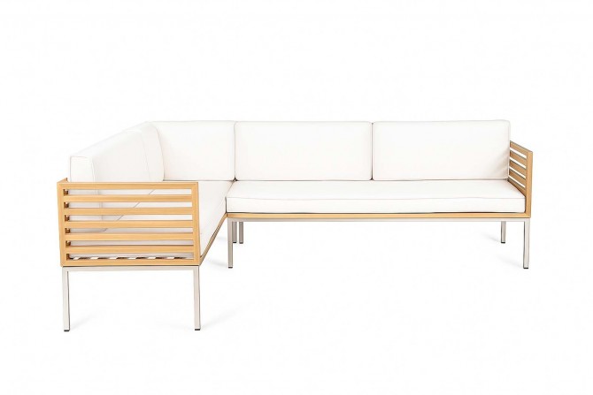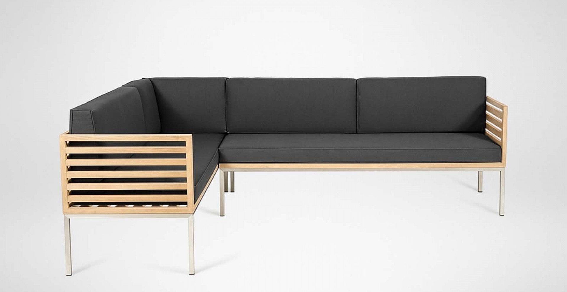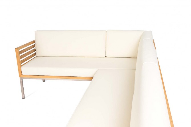 Die perfekt abgestimmte Komposition aus rostfreiem Edelstahl, Teakholz und der in den Farben variierbaren, Polsterung ermöglicht es Ihnen, es sich bequem zu machen und gleichzeitig schlichtes wie elegantes Design zu genießen. Natürlich können Sie sowohl Farbe als auch Muster der Polsterung auswählen. Die Polster sind relativ resistent gegen Wasser und Schmutz, wahlweise bieten wir auch Wasser- und schmutzabweisende Stoffe.