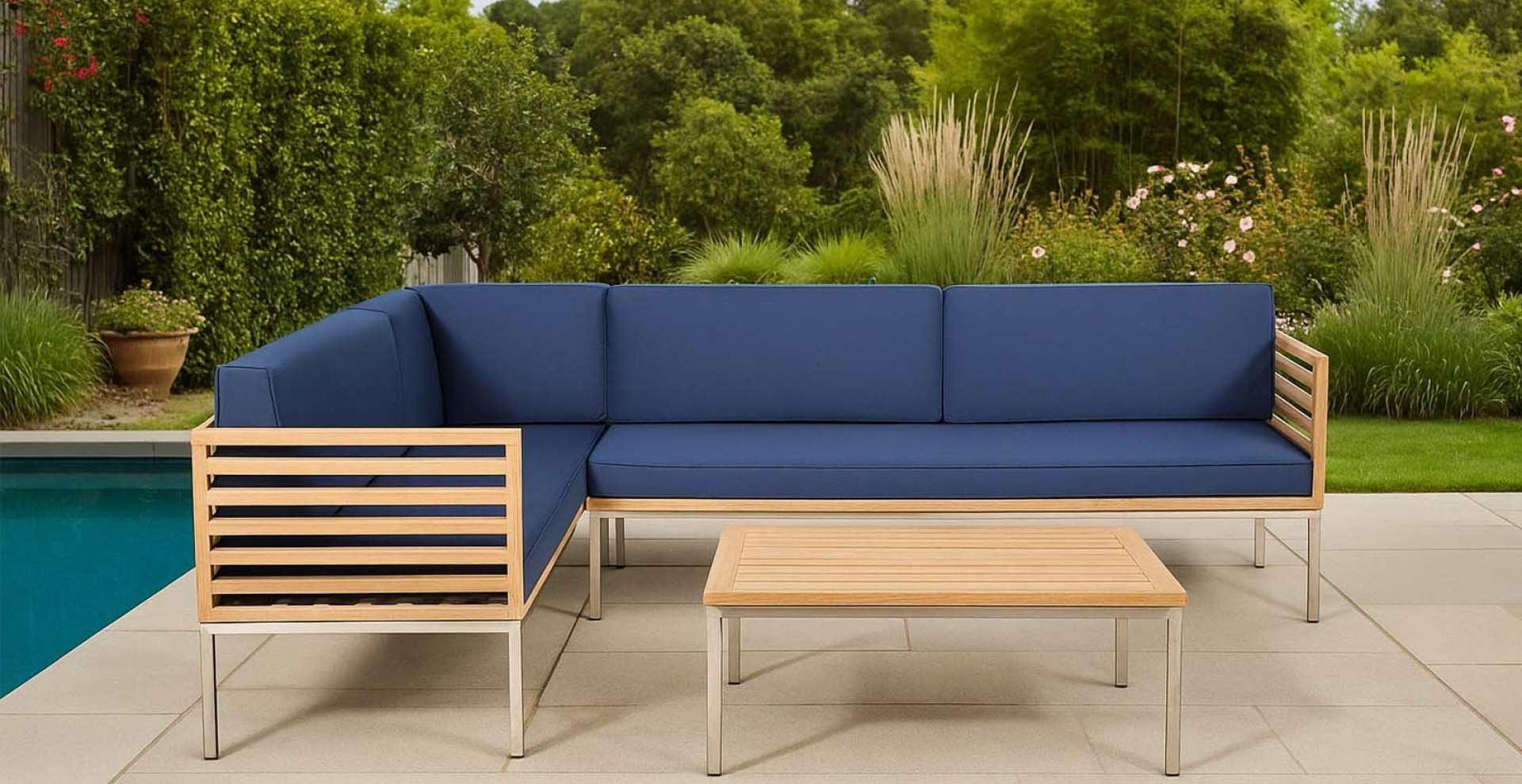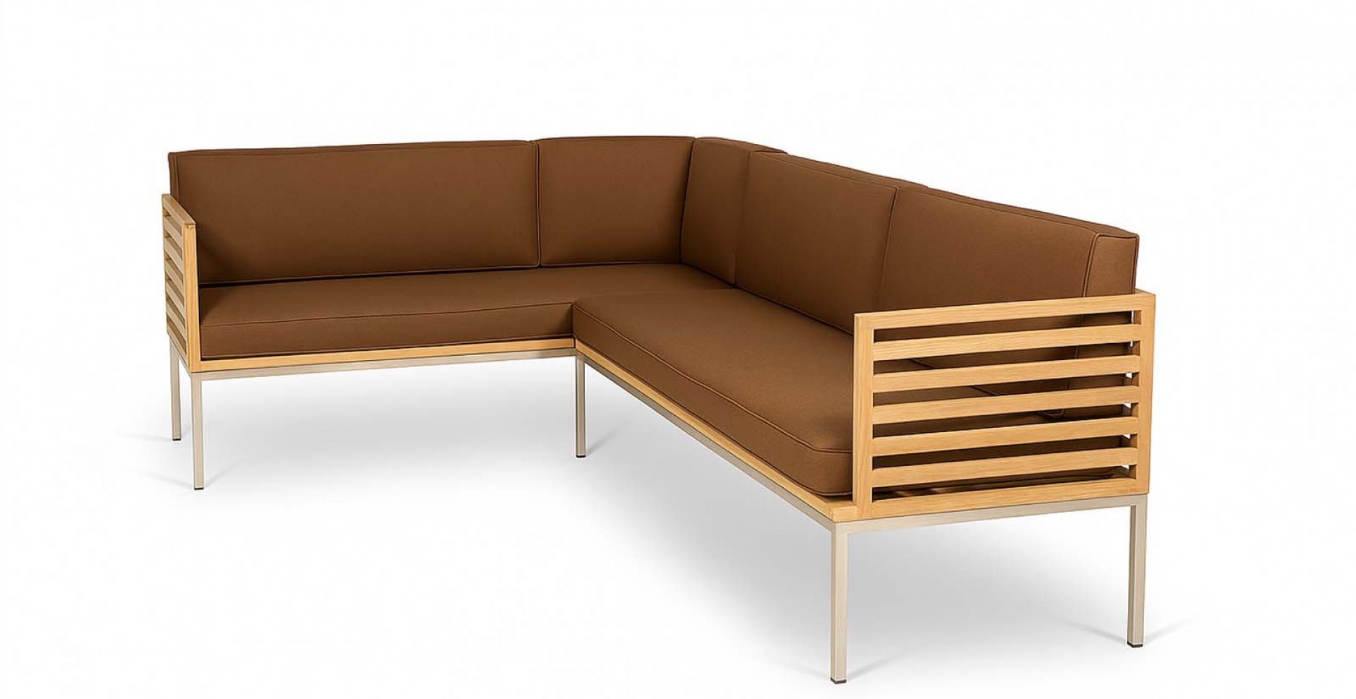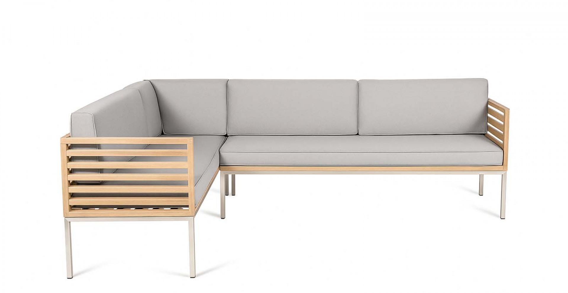 Die perfekt abgestimmte Komposition aus rostfreiem Edelstahl, Teakholz und der in den Farben variierbaren, Polsterung ermöglicht es Ihnen, es sich bequem zu machen und gleichzeitig schlichtes wie elegantes Design zu genießen. Natürlich können Sie sowohl Farbe als auch Muster der Polsterung auswählen. Die Polster sind relativ resistent gegen Wasser und Schmutz, wahlweise bieten wir auch Wasser- und schmutzabweisende Stoffe.