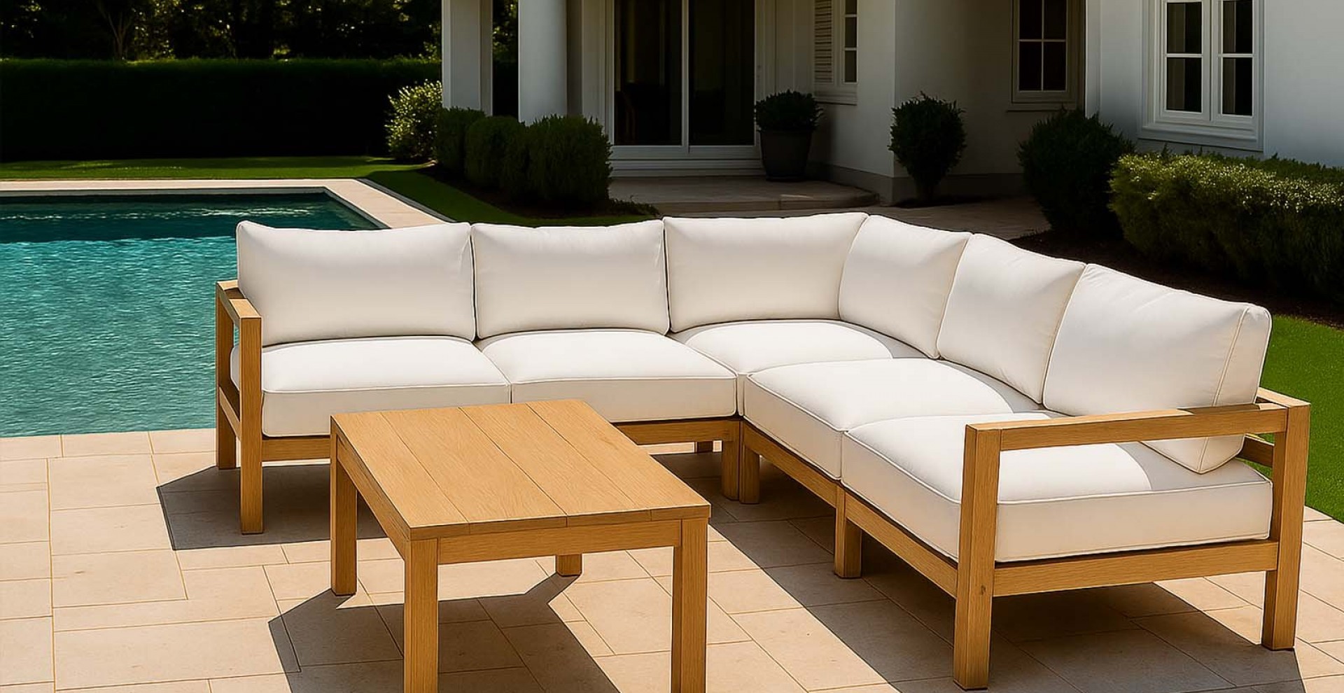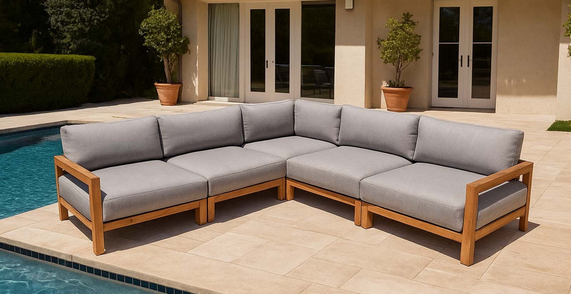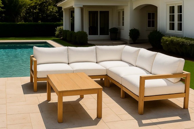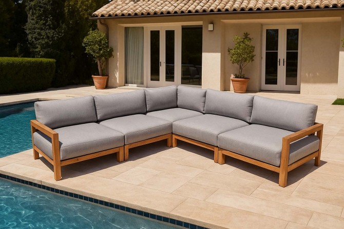 Das geradlinige Design, handwerkliche Verarbeitung und edles Teakholz sorgen dafür, dass diese Lounge zeitübergreifend wirkt bzw. mehrere Generationen lang ihre Beliebtheit bewahren kann.