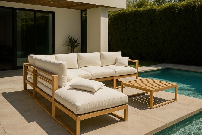 Das geradlinige Design, handwerkliche Verarbeitung und edles Teakholz sorgen dafür, dass diese Lounge zeitübergreifend wirkt bzw. mehrere Generationen lang ihre Beliebtheit bewahren kann.