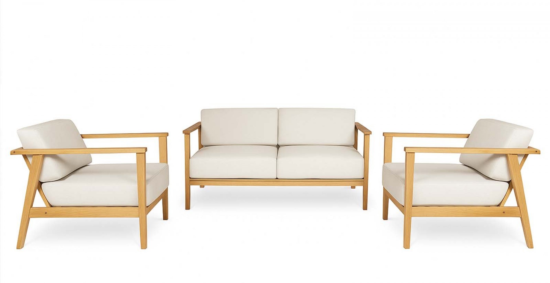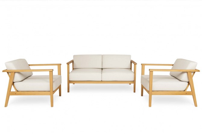 Das Set besteht aus einer Sitzbank und 2 großzügigen Einsitzern, die hohen Pölster garantieren einen angenehmen Sitzkomfort. Die Rückenlehnen sind schräg gehalten und ermöglichen ein noch angenehmeres Sitzgefühl.