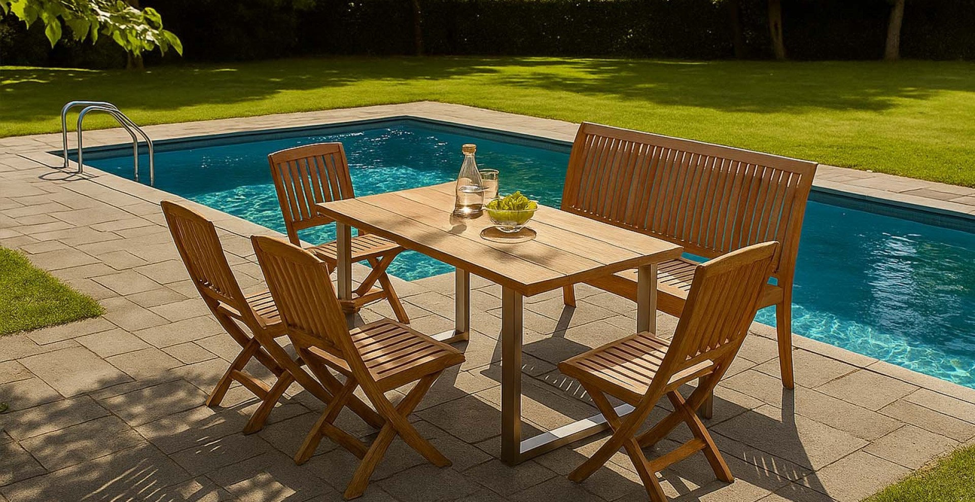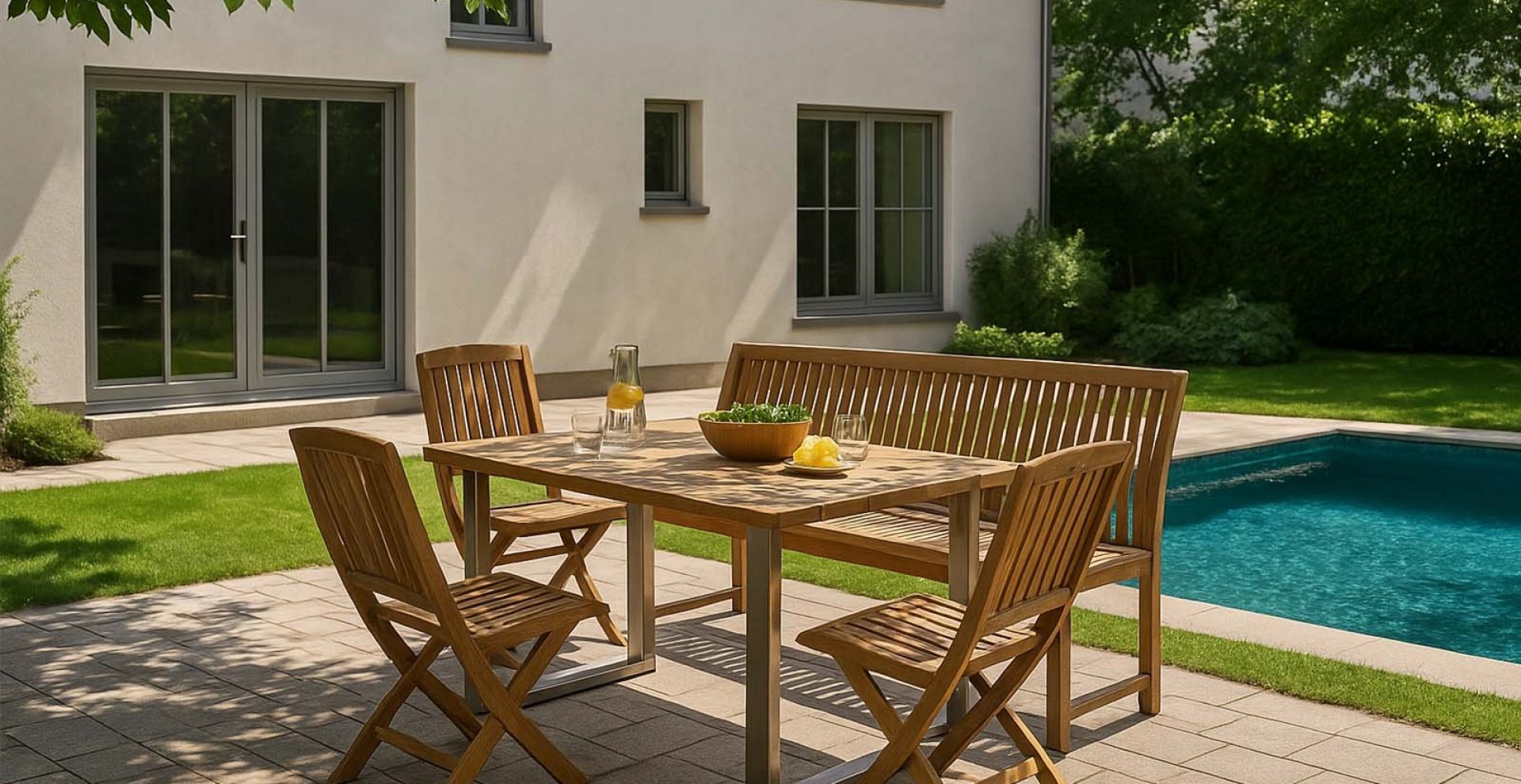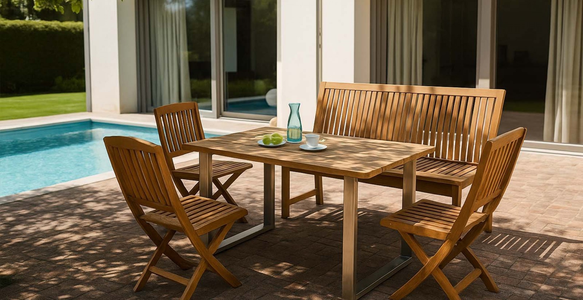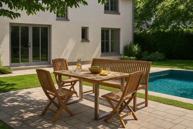 100% Plantagenteak & Edelstahl / 100% Wetterfest