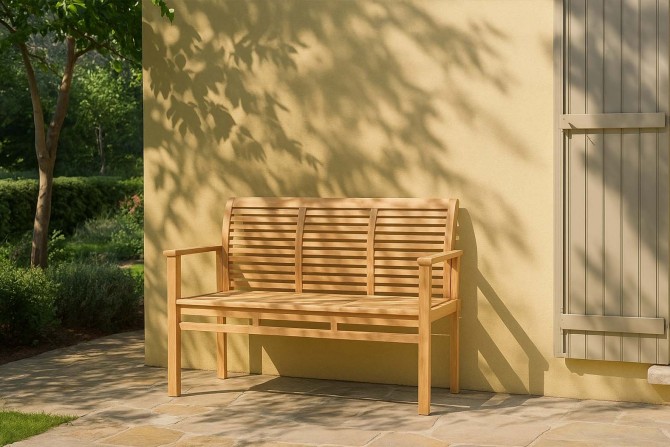 Das schwungvolle Design der Bank aus Teakholz wird betont durch eine nach hinten leicht abfallende Sitzfläche. Auf der Gartenbank können Sie sich entspannt zurücklehnen und fallen lassen.