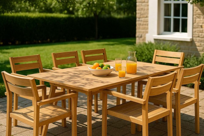 Das fein geschliffene Teakholz von Matrix macht ihn zum massiven, robusten Mittelpunkt Ihres Gartens oder Ihrer Terrasse. Obwohl der Tisch sehr leicht aussieht, ist er doch recht schwer und trotzdem leicht zu montieren bzw. abmontieren.